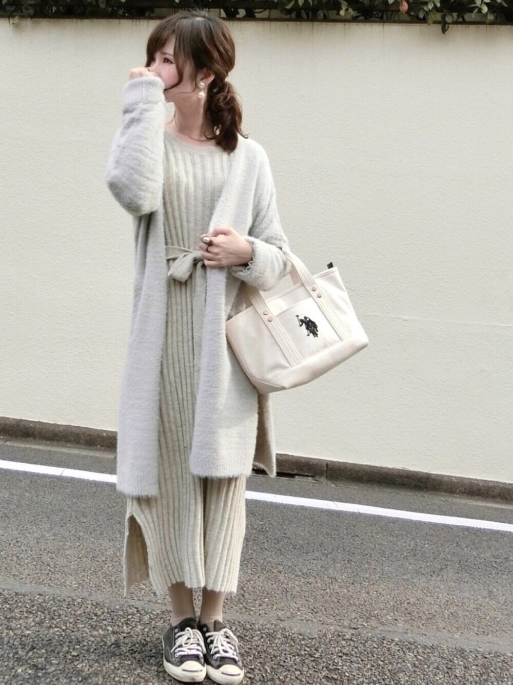 まっしろ部屋着コーデが続きます。笑 昨日の全身版! goldyさんのイヤリング、遠目でも目立つ🙋🏻♀️✨ furryrateさんのロングカーディガン、 肌触り最高だし、グレイッシュベージュの色が 合わせやすくてとても可愛い☺️💓 crispのニットワンピはZOZOラスト1点を 勝ち取りました!いえい! 後日再入荷されてたけどな!!笑 #pr いんすた ☞@mimimi_730