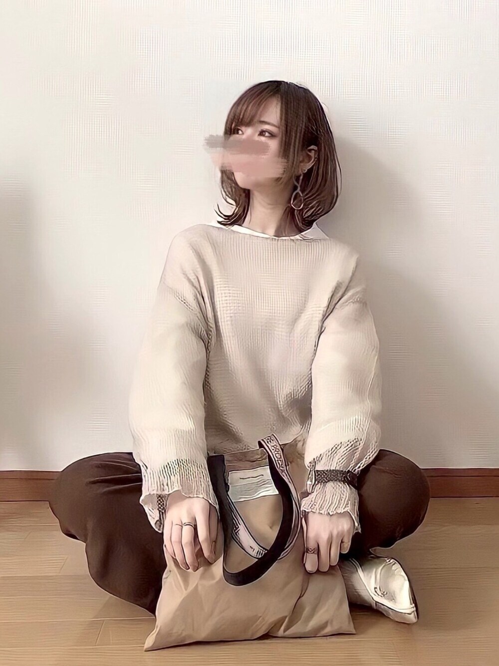 みみみのニット/セーター「レースアップモヘアニット」を使ったコーディネート