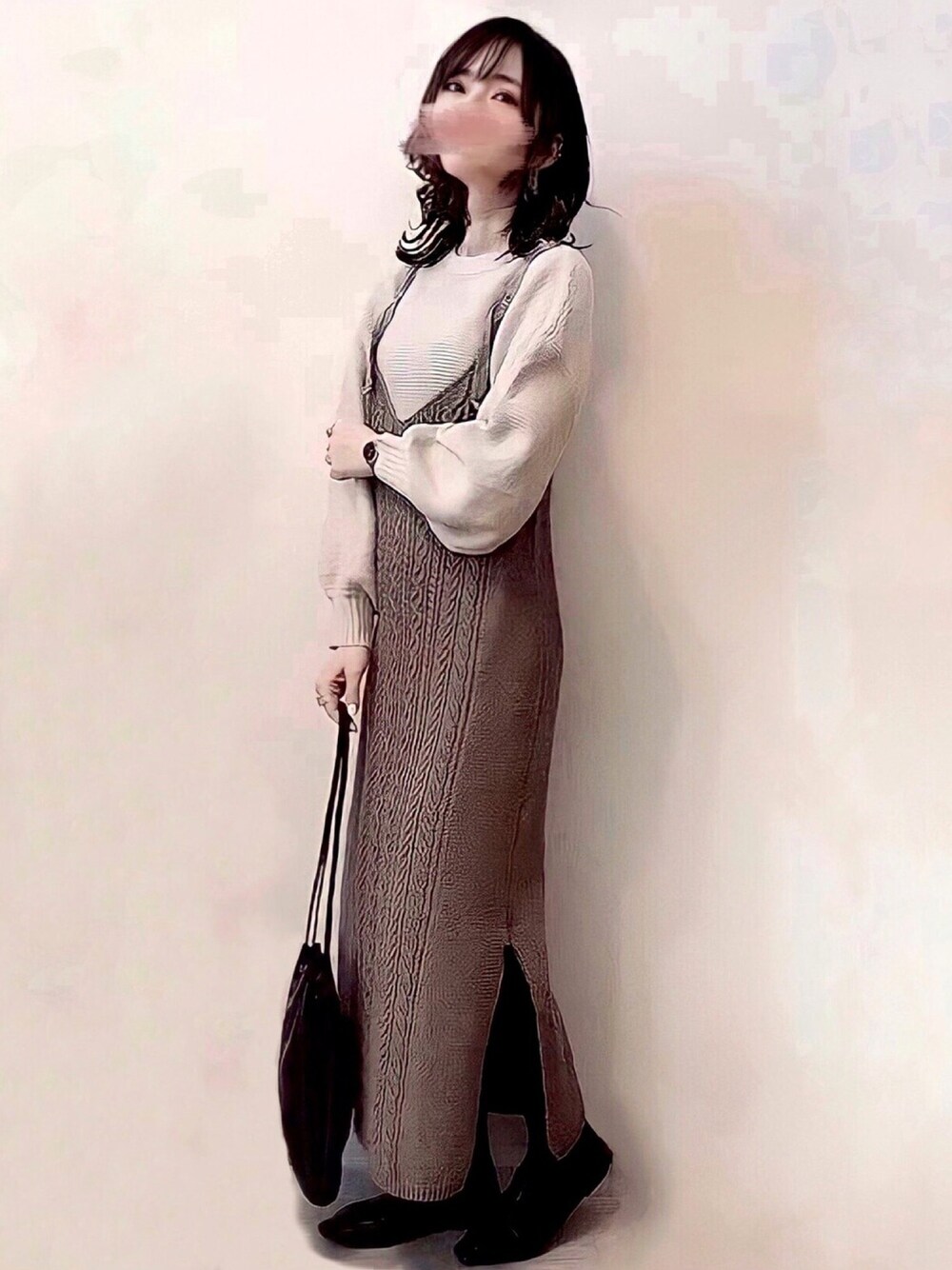 みみみのワンピース「ケーブルニットキャミワンピース」を使ったコーディネート