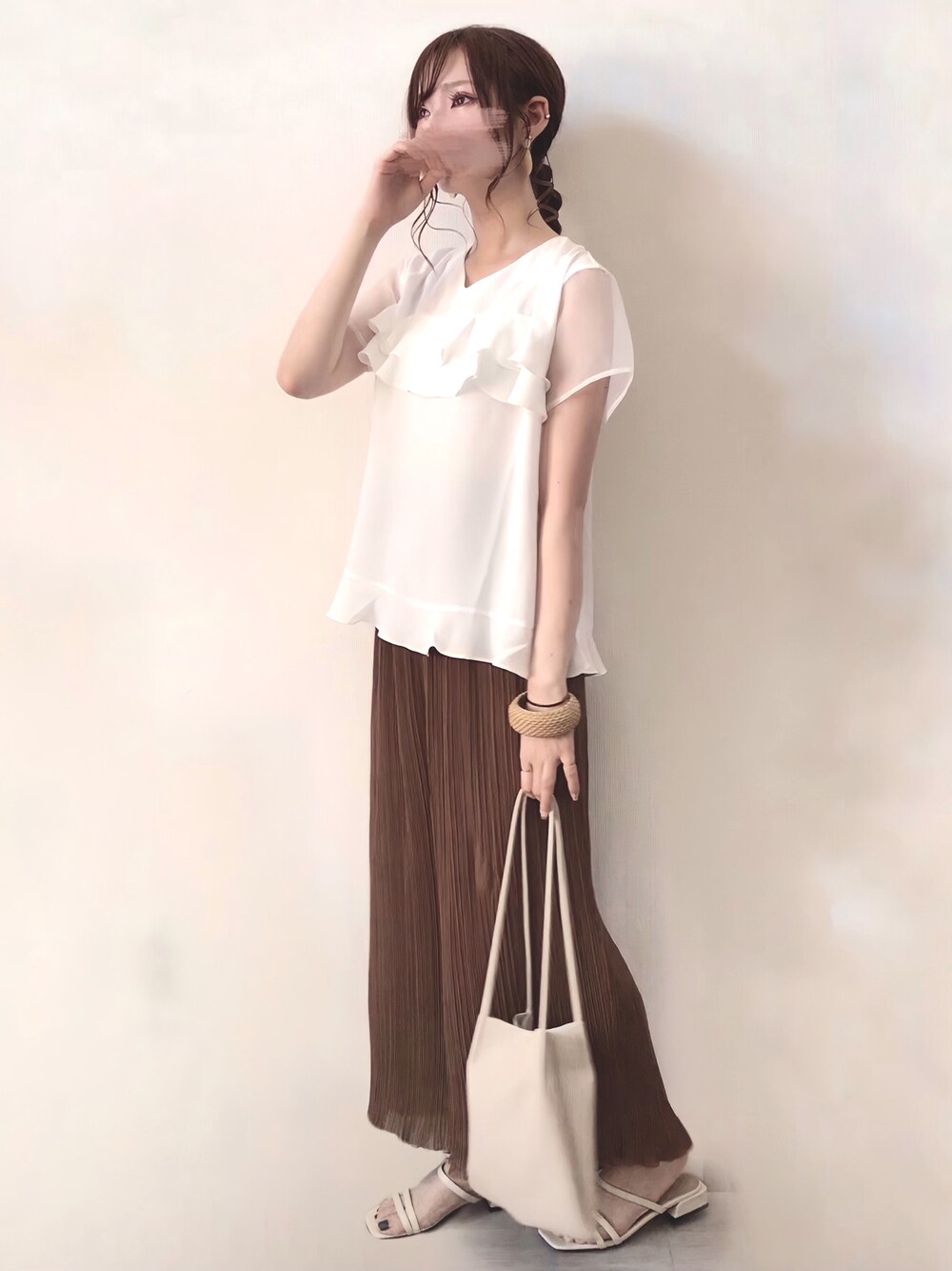 d2einさんのブラウス、 そでが透けてるデザインが 夏らしくて好き🥳 前から見ると胸元のフリルが可愛くて、 後ろはバックレースになってるのですっ これまた可愛いデザイン☺️🌱 インスタには後ろ姿も載せるから ぜひ見てね!🙆🏻♀️ 友達が丈ひきずるからって貰い受けたパンツ、 めちゃくちゃ履いてる今日この頃、、 ----------------------------------- いんすた毎日更新してます🐒❣️ よかったら遊びにきてね🤤 ☞@mimimi_730 -----------------------------------