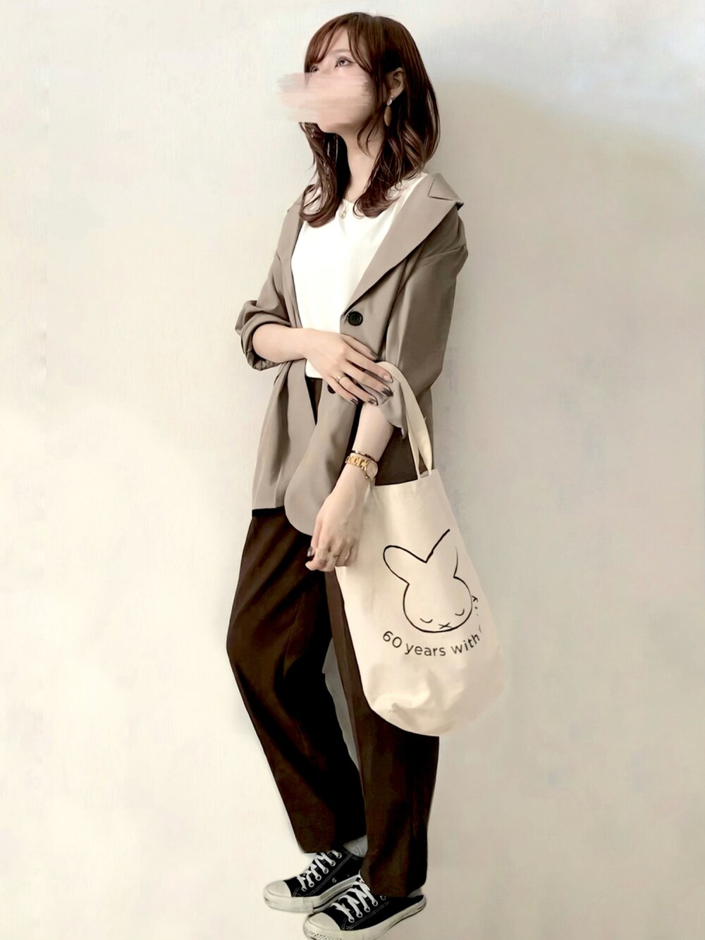 みみみのスラックス「【PURIL】TRセンタープレス タック入りテーパードパンツ」を使ったコーディネート
