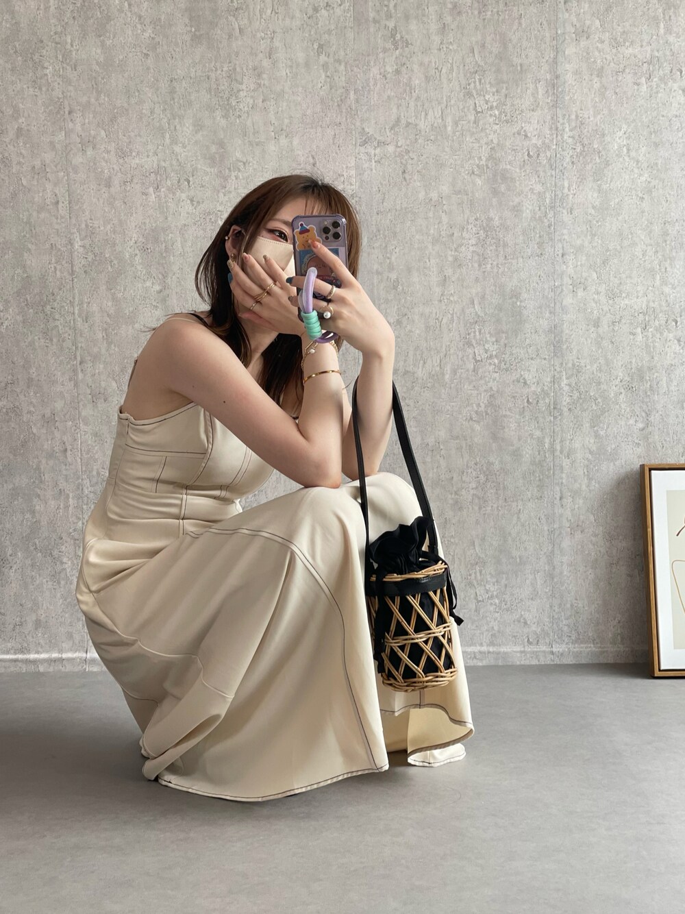 みみみのワンピース「配色ステッチビスチェキャミワンピース」を使ったコーディネート