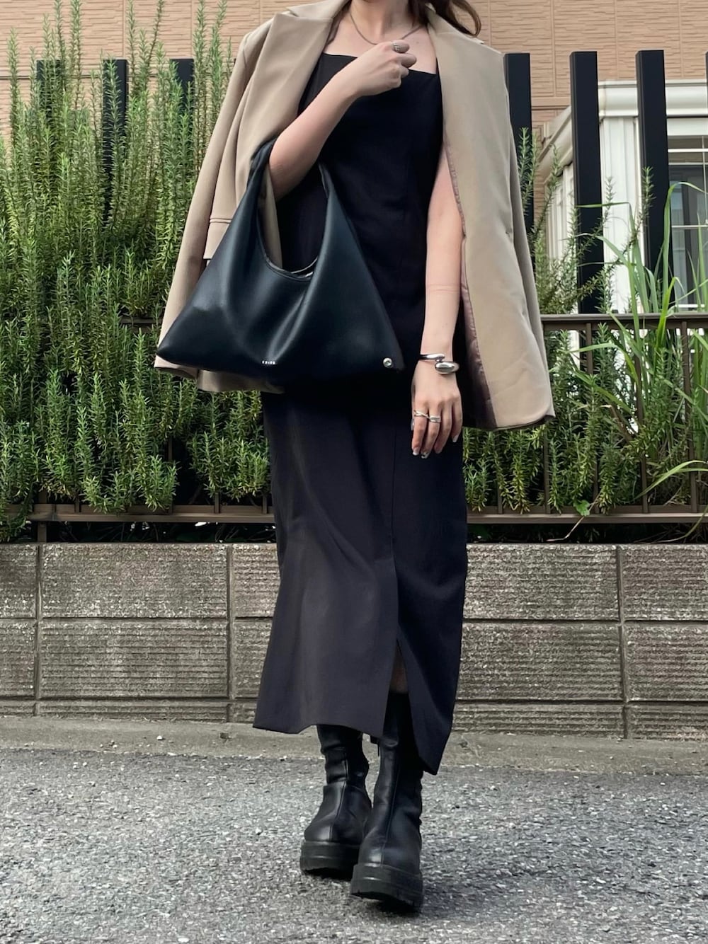 みみみのハンドバッグ「EDITA./エディータ ネオプレン 軽量 ベルト ハーフムーン ハンドバッグ ショルダーバッグ」を使ったコーディネート