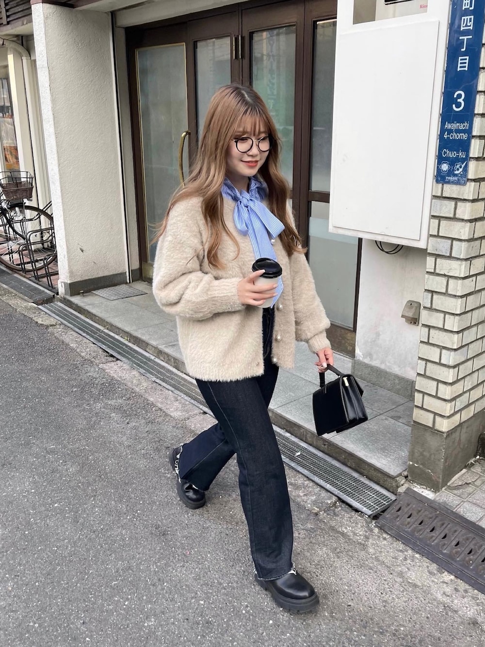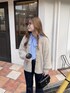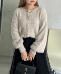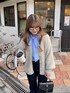 ストライプのブラウスにシャギーカーデとの組み合わせコーデ 単体でも映えるアイテムですが、キレイめさを抑えたい方などにオススメです! ブラウスはリボンが特徴なので、それを活かしカーディガンから見える感じがキレイめカジュアルに