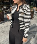 ボーダー×ファーベスト 全体的に白黒茶の色だけでまとめました! デニムとブーツでカジュアルに、帽子とカバンでカチッと感が合さってキレイめカジュアルに!