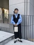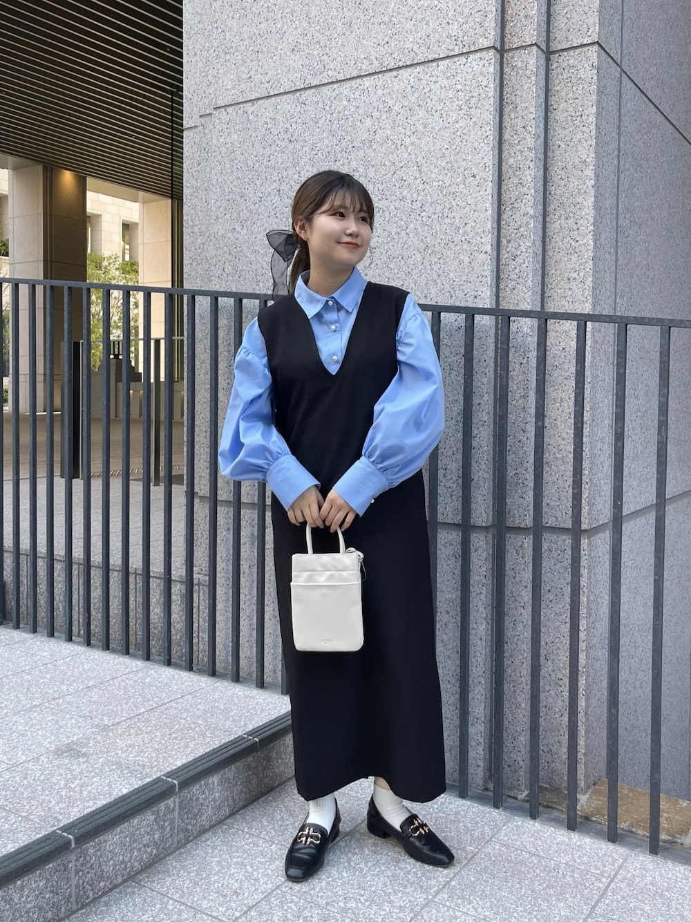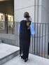 ブルーとブラックで大人っぽコーデに! ワンピースもシンプルなのでいろんなトップスに合わせやすいです!