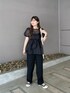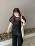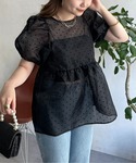 ドットペプラムブラウス ペプラム×ドットで甘めにシアーで大人っぽくしてくれるアイテムです!! ほぼオールブラックですが、シアーでぬけ感もあり、女性らしい印象に見せてくれます! ゴールドのアクセサリーで上品見えにも!