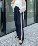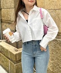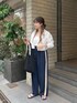 ショート丈シャツを合わせてカチッと感した印象をプラスしてくれるコーデ! ショート丈をあわせるとより脚長効果にみせてくれます!
