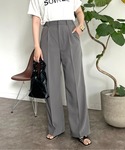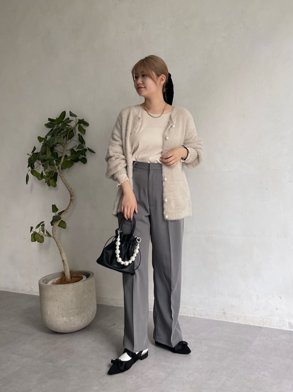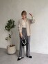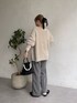 淡色コーデ グレージュとグレーのスラックスで大人っぽく! ゆるっと着れるのでお尻の周りもしっかり隠してくれす!