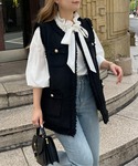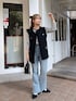 フレンチカジュアルコーデ 1枚としてもインナーできても可愛いボーダートップス で今回はツイードを重ね着しました! ベストとデニムのフリンジがこなれ感を出してくれます! お尻が隠れる丈感で着ていただけます!