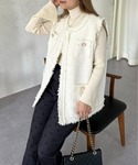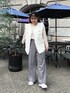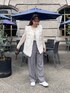 淡色でまとめてみました! カチッとしたツイードベストや、袖シアー・スラックス、スニーカーでカジュアルさをプラスしているので、 甘すぎない印象に!