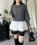 MIO(prose verse)のニット/セーター「【裾取り外し可能】2wayケーブルパールチュールペプラムニット」を使ったコーディネート