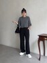 ペプラムニットにスリムパンツを合わせしまた! 裾を外してショート丈にするとパンツがハイウエストなので脚長に見せてくれます!! 小さなパールがアクセントに! 158cm着用 トップス:M ボトムス:M シューズ:XL