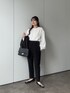 セレモニーコーデ! スカラップがアクセントに 袖のボリュームがかわいいです♡ 細みのテーパードでハイウエストなので スタイルよくみせてくれます!✨ 158cm着用 トップス:M ボトムス:M シューズ:L