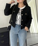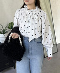 大人キレイめカジュアルコーデ!! ドットブラウスにデニムを合わせました! タックインをしてよりスタイルよく! ツイードジャケットでカチッと! 158cm着用 トップス:M ボトム