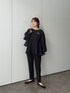 セレモニーコーデ! ブラックコーデでもジャガードの素材感や ブローチのワンポイントが華やかに! 細みのテーパードでスタイルよくみせてくれます!✨ 158cm着用 トップス:M ボトムス:M シューズ:L
