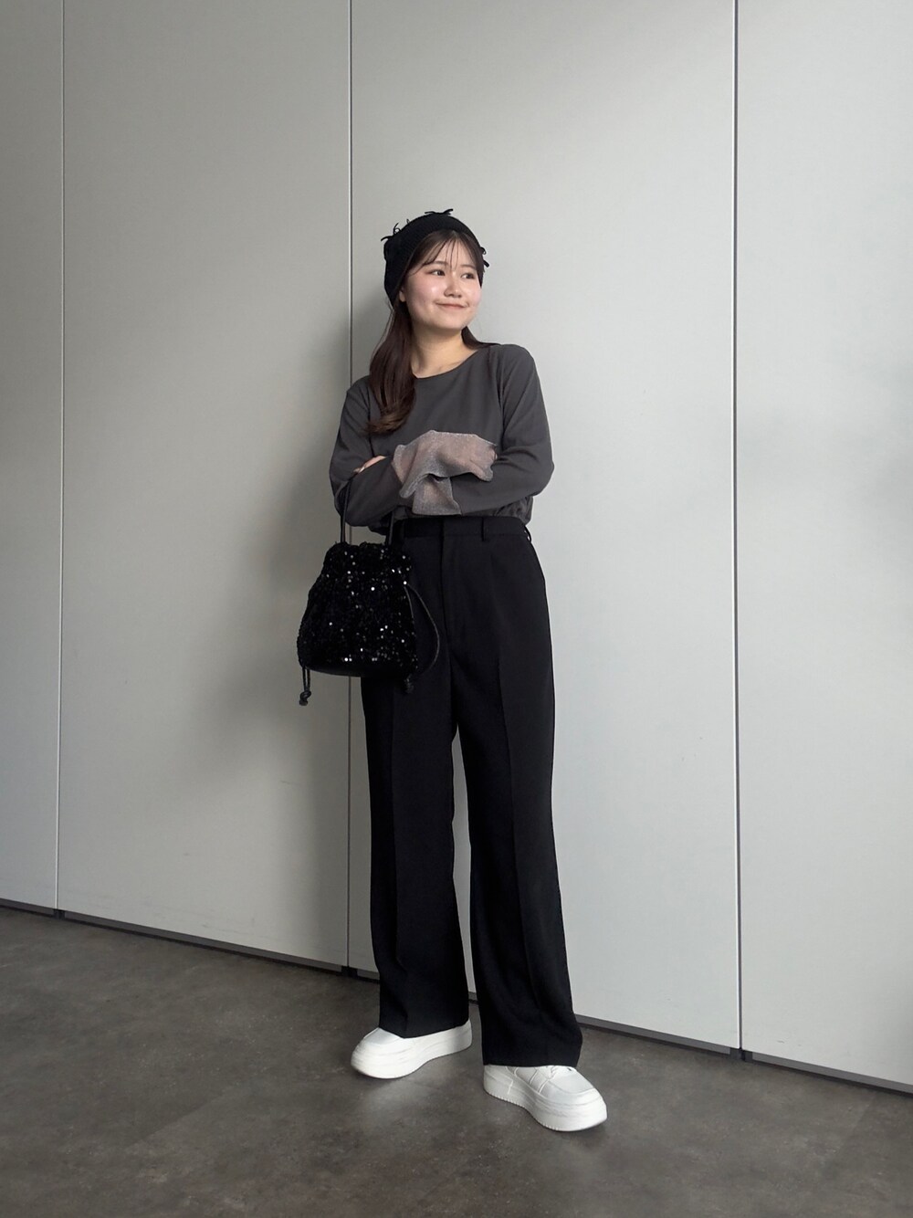 158cm着用 トップス:M ボトムス:PM シューズ:XL