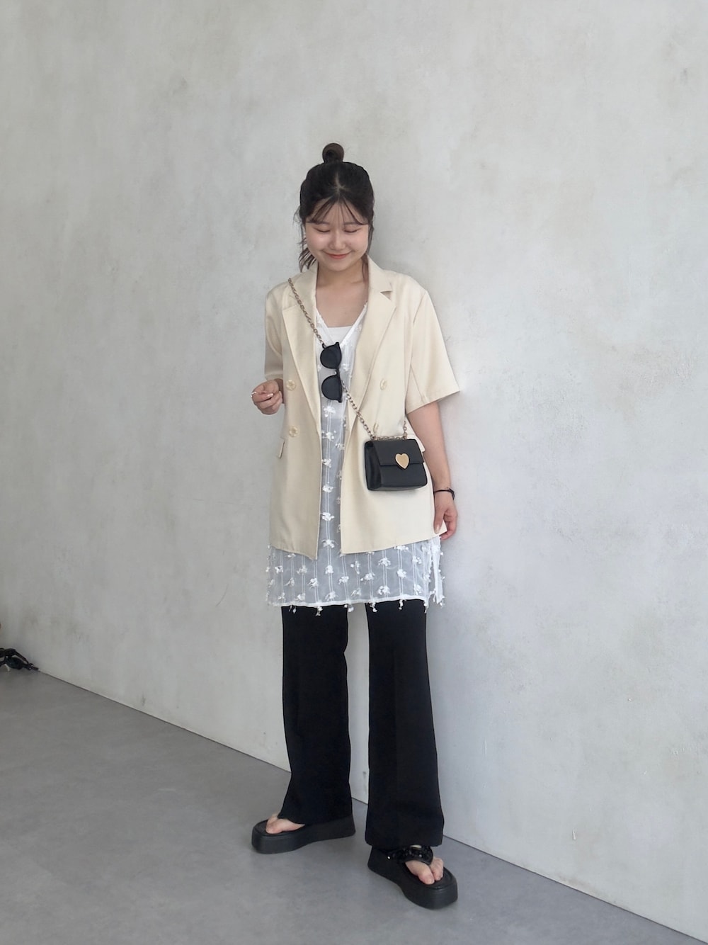 MIO(prose verse)のテーラードジャケット「リネンタッチWボタン半袖ジャケット」を使ったコーディネート