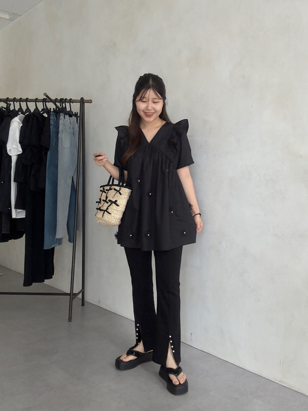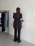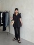 オールブラックコーデ Aラインブラウスに スリットパンツを合わせました! 骨盤周りカバーしてくれるので 細みのパンツとも安心して合わせていただけます! 158cm着用 トップス:M ボトムス:M シューズ:L