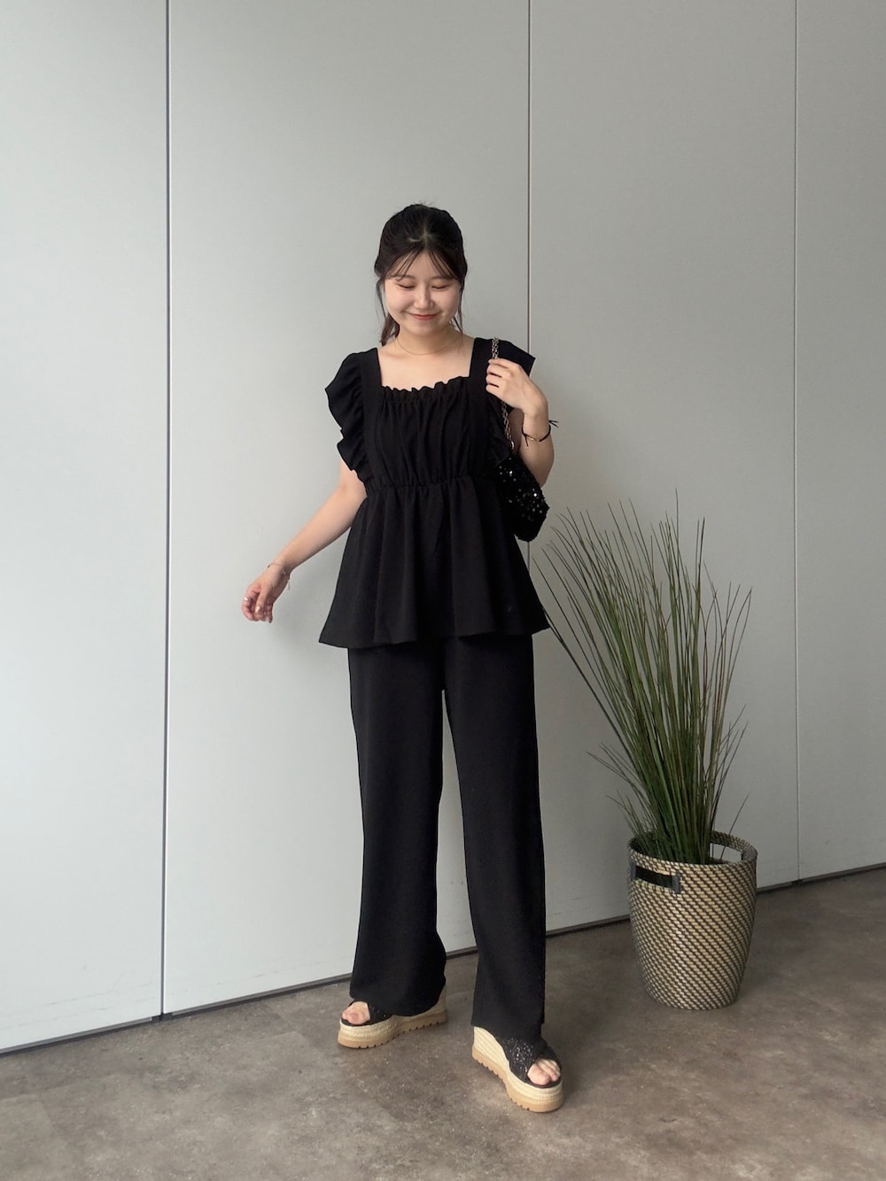 オールインワンコーデ! 一枚で完成するので楽ちん! くびれも作ってくれるのでスタイルもよく見せてくれます! 丈感重視でLサイズを着用してます! 158cm着用 オールインワン:L