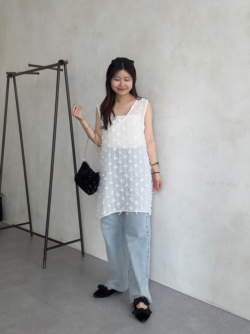 MIO(prose verse)のベスト「【MOMO】シアーフリンジVネックロングベスト」を使ったコーディネート