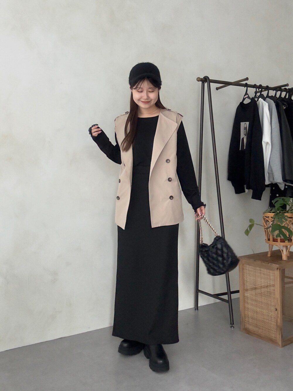 袖シアーとナロースカートのオールブラックに トレンチジレをプラス! ワンピース風にみえて可愛いし トレンチがカチッとしてくれてます! 158cm着用 トップス:M ボトムス:TM シューズ:L