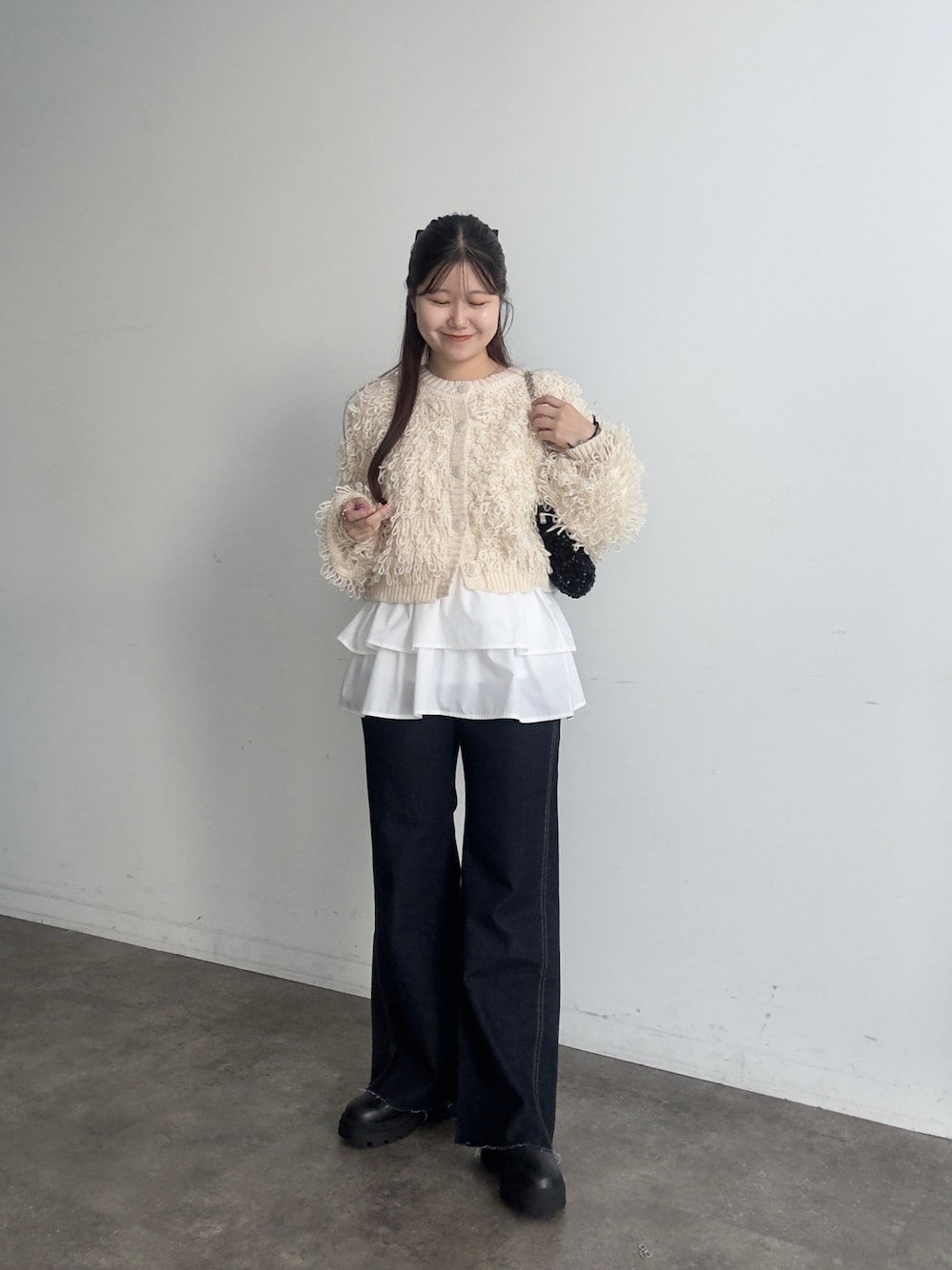 大人甘めカジュアルコーデ!! カーディガンにミニスカをレイヤード! 骨盤周りカバーしてくれる丈感で着ていただけるので細みのボトムスともバッチリ!! 158cm着用 トップス:M ボトムス:M シューズ:L