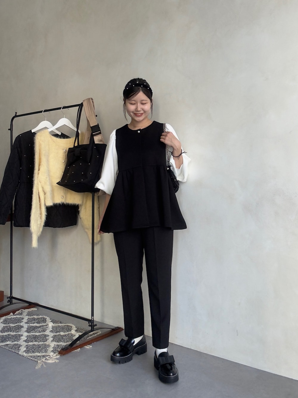 大人きれいめコーデ✨ ペプラムブラウスにテーパードを合わせました! 特別なシーンにピッタリです! 158cm着用 トップス:M ボトムス:M シューズ:L