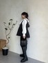 甘めカジュアルコーデ! ペプラムジレにスリットパンツを合わせました! ロングブーツにインしてます! 襟スウェットを中にきて甘さをプラス! ジレがVネックなのでレイヤードしやすい! 158cm着用 トップス:M ボトムス:M シューズ:L