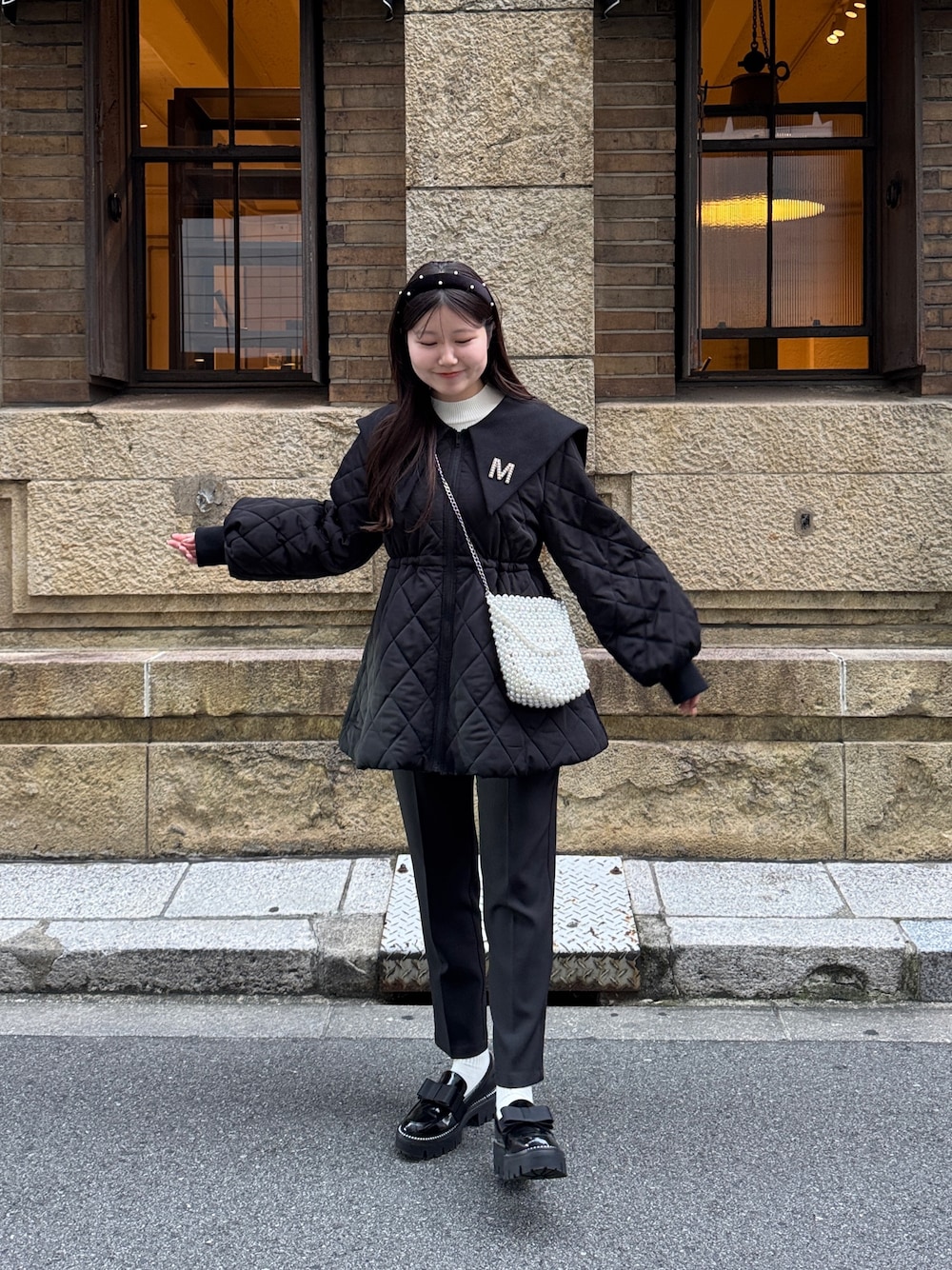 大人甘めカジュアルコーデ! ペプラムブルゾンにテーパード合わせ! ブルゾンがくれびを作ってくれるので スタイルアップしてくれます! 158cm着用 トップス:M ボトムス:M シューズ:L