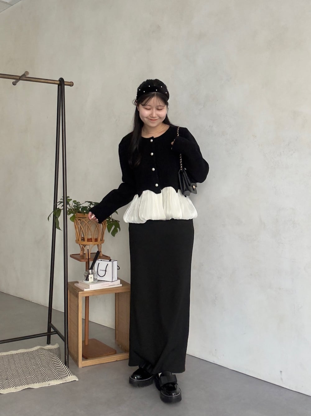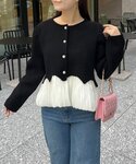 MIO(prose verse)のカーディガン/ボレロ「裾バルーンパールボタンドッキングペプラムニット」を使ったコーディネート