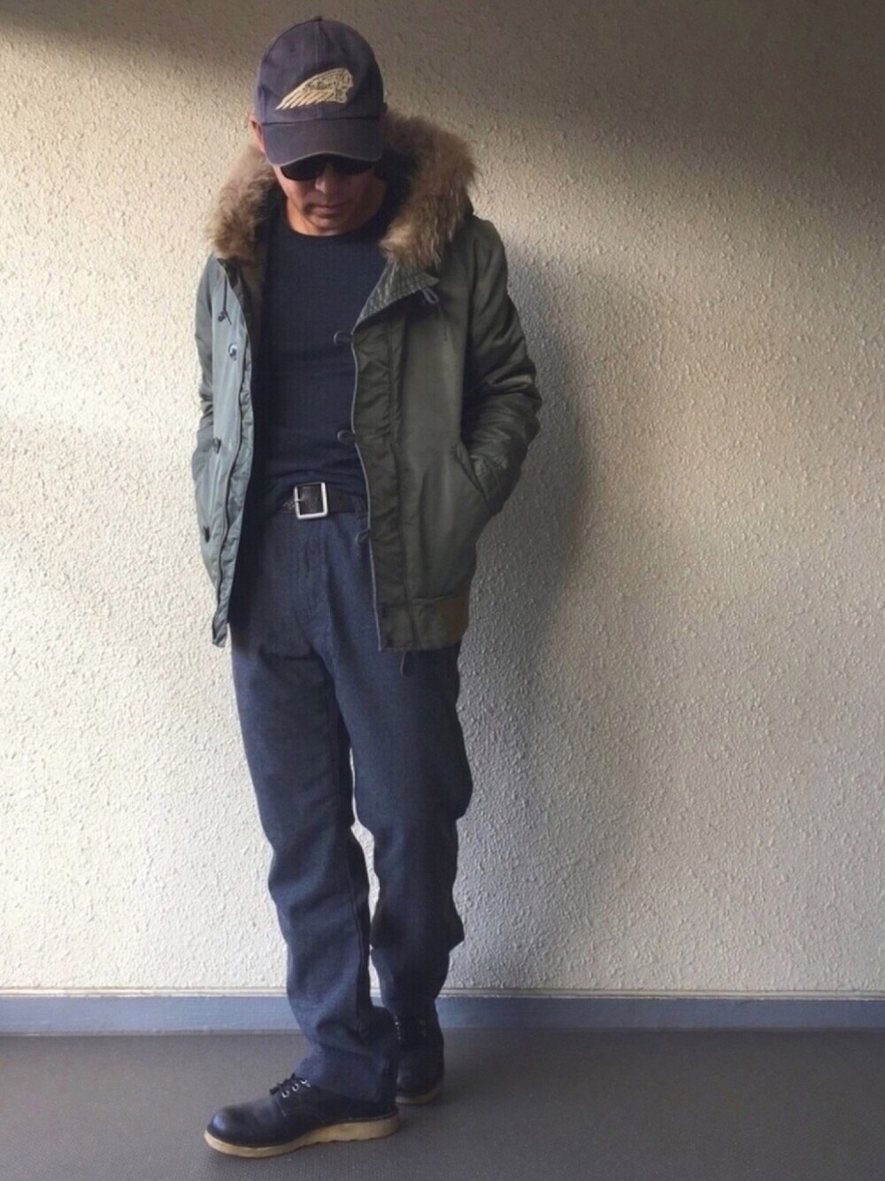 こんばんは😊 ご覧頂きありがとうございます✨ 本日はオトナアメカジ❗️な感じ😆 帽子は20年位前に友人に頂いた物 刺繍と劣化も味とゆーことで🙇♂️ アウターはおっさんになっても着れる🤩と購入した物✨もう10年😁レッドウィングも20年位博物館みたい…笑💦 ベルトはユニクロさんがジルサンダーとコラボしたスタッズベルトですっ いつもいいね☆お気に入り感謝ですっ‼️