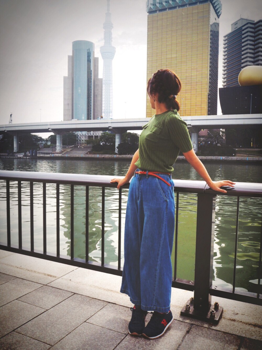 今日のオフコーデは野外です😊✨ 早朝スカイツリーと🌟 ミリタリーテイストなリブニットは お店のオープンに着た思い出のお洋服💓 今日はいっぱい移動予定だったので 動きやすさも重視で~😝 それにしてもすごく暑かった💦