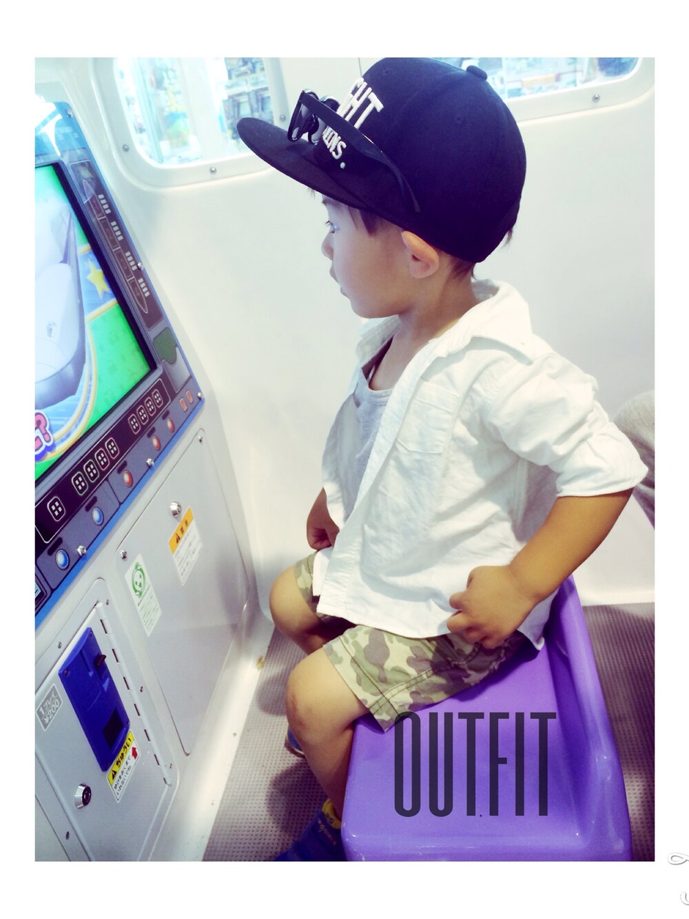 キャップ:しまむら タンクトップ、白シャツ:無印良品 ズボン:3can4on くつ:NB
