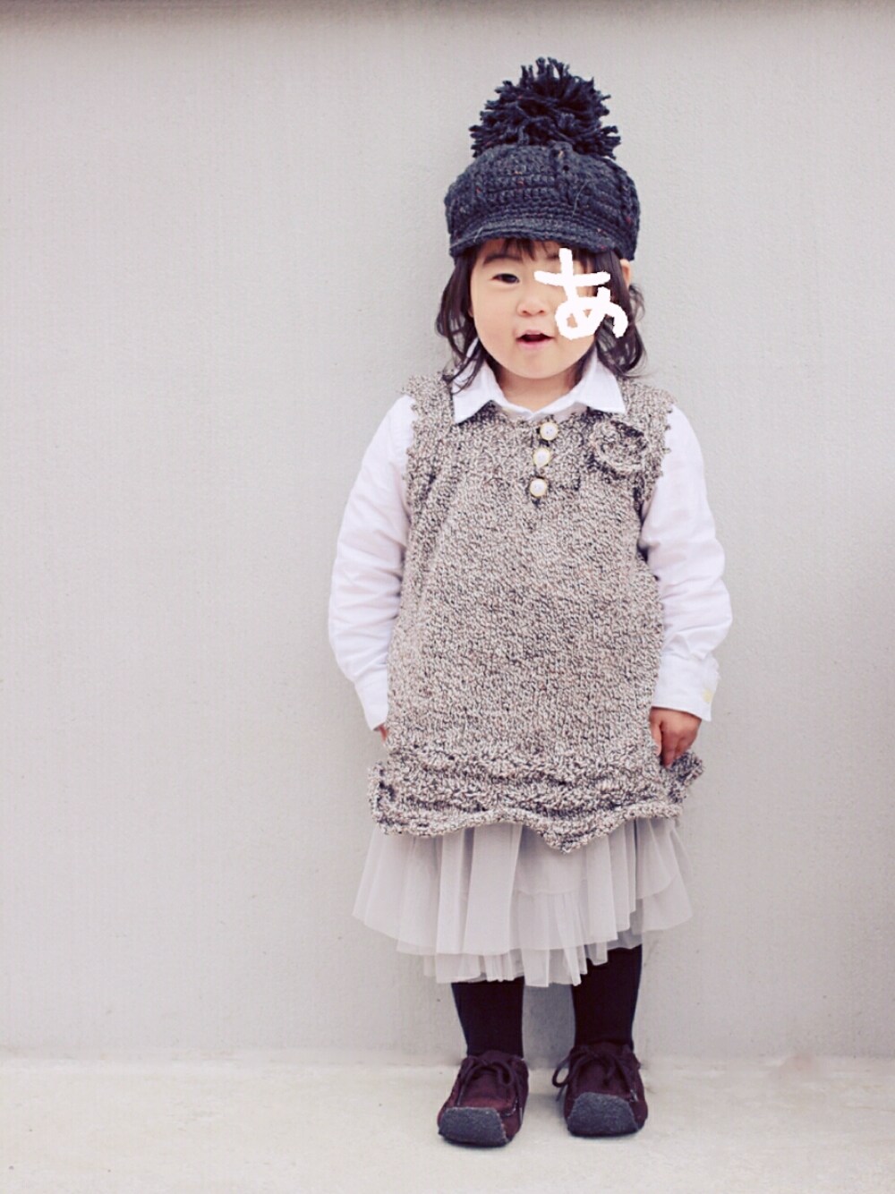 あ*ずのキャスケット「ママの手作りニットキャスケット」を使ったコーディネート