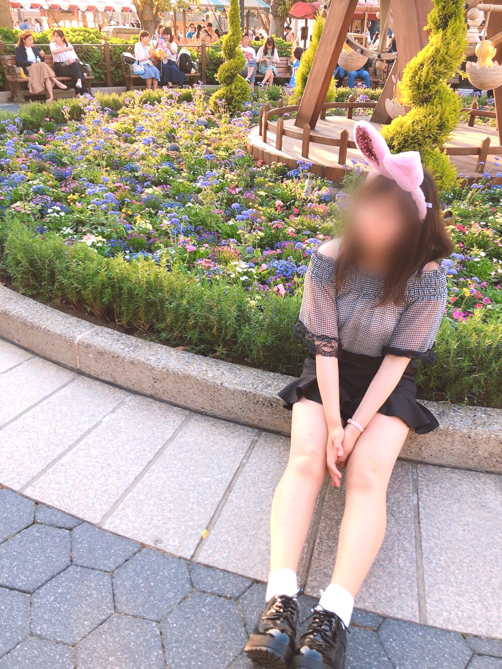 この前のディズニーコーデ🐭💓 カチューシャがピンクのスパンコールで目立つから、コーデはシンプルにしてみたよ☺️ NICE CLAUPの洋服かわいくてついついたくさん買ってしまう🥺