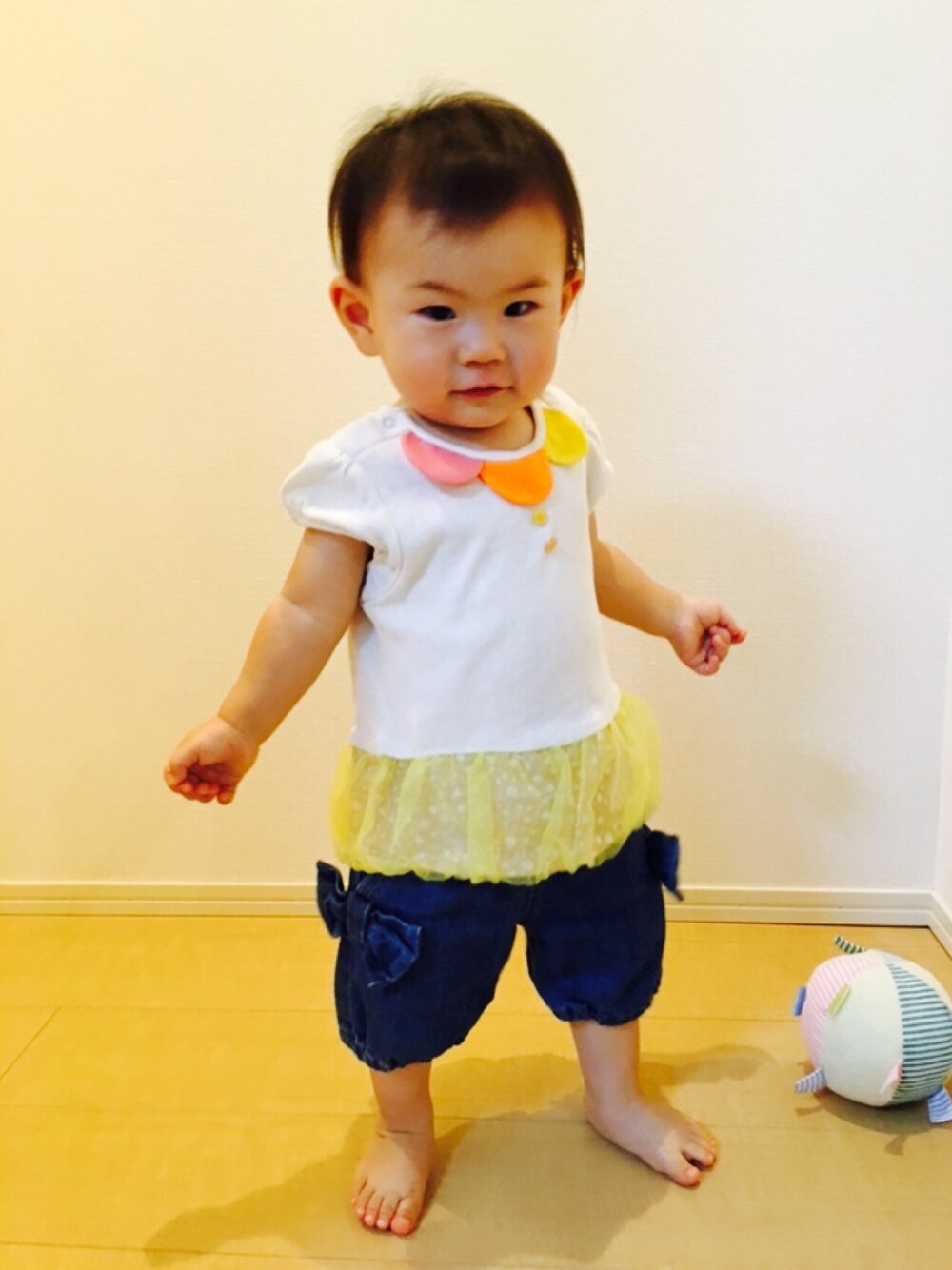 このロンパース昨年お祝いでいただいたもの! やっと着れるようになったから今年はいっぱい着せよう♡ デニムはハンドメイドのお店で購入!リボンが付いてるとこがお気に入り! シンプルコーデしたいけど薄毛ちゃんだからどうしても男の子に間違われないようにガーリーになってしまう!
