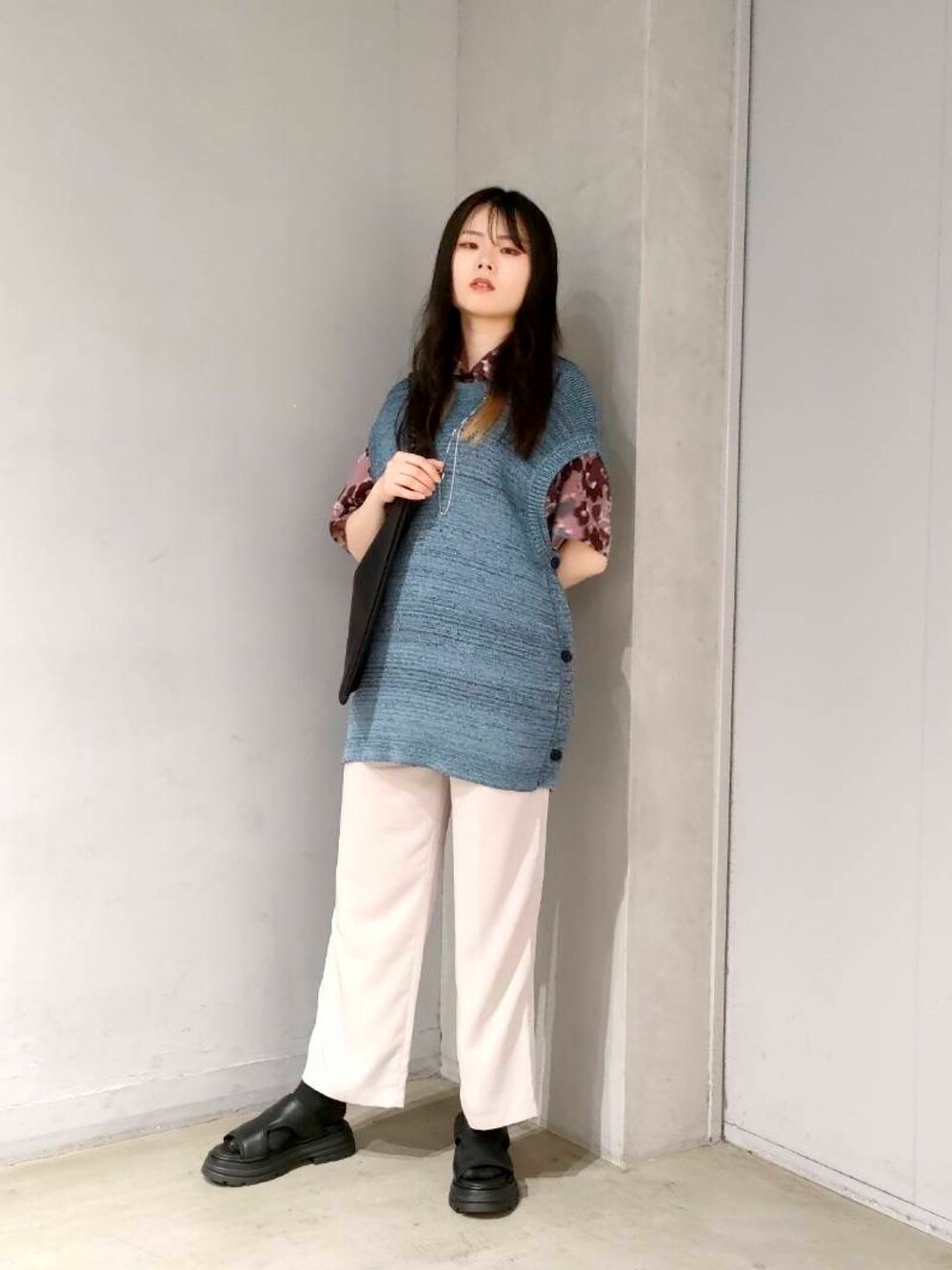 a(tk.TAKEO KIKUCHI 京都藤井大丸店)のその他パンツ「◆なめらかワイドストレートパンツ」を使ったコーディネート