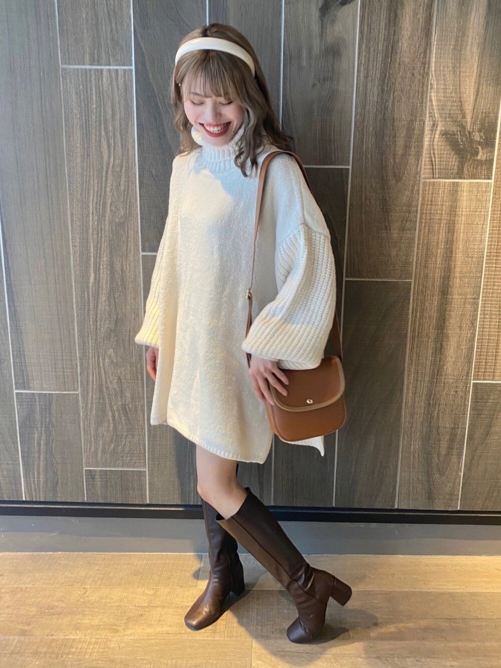はじめまして🕊 投稿見てくださりありがとうございます🍂 今日はニットワンピースコーデです🧶 袖の切り替えと、たぽっとボリューム感 可愛すぎませんか??🤍 スリットがはいっていて、フレアパンツとかレイヤードしても合いそう😌👌🏻