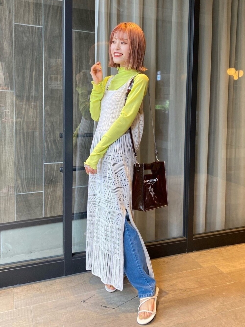 はじめまして🕊 投稿見てくださりありがとうございます🌼 キャミワンピのスリットから見えるデニムパンツが、コーデの可愛さ引き立たせてる👖♡ レイヤード大好きマンだから、色んなボトムス履いて楽しめちゃう系のお洋服即買いしがち🐮