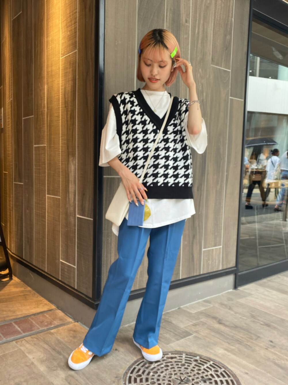 中村 未緒のベスト「千鳥柄 Vネック アクリルニットベスト」を使ったコーディネート