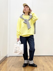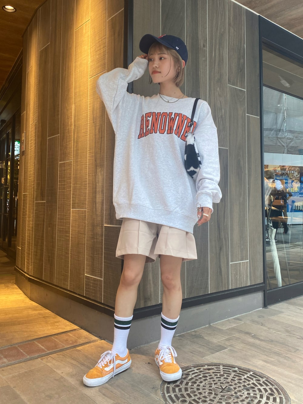 はじめまして🕊 投稿みてくださりありがとうございます🌼 ストリートスタイル👟 毎年集めたくなるカレッジスウェット🧡🤍 大きすぎないちょうど良い丈感で着やすい✌🏻