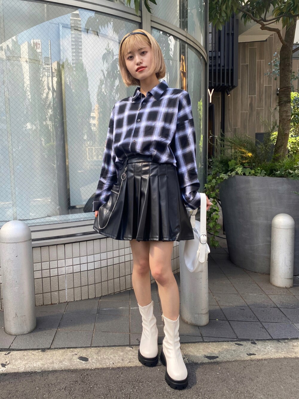 はじめまして🕊 投稿みてくださりありがとうございます🌼 今日は韓国ファッションです🇰🇷 レザーのプリーツミニスカに、秋トレンドのオンブルチェック✌🏻 ミニスカのデザイン性が可愛すぎるとよ♡