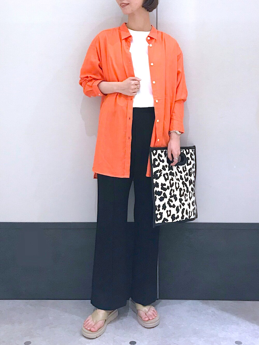 チクチクしにくいリネンブレンドシャツ☺︎☺︎ オレンジで夏らしさ満点◎