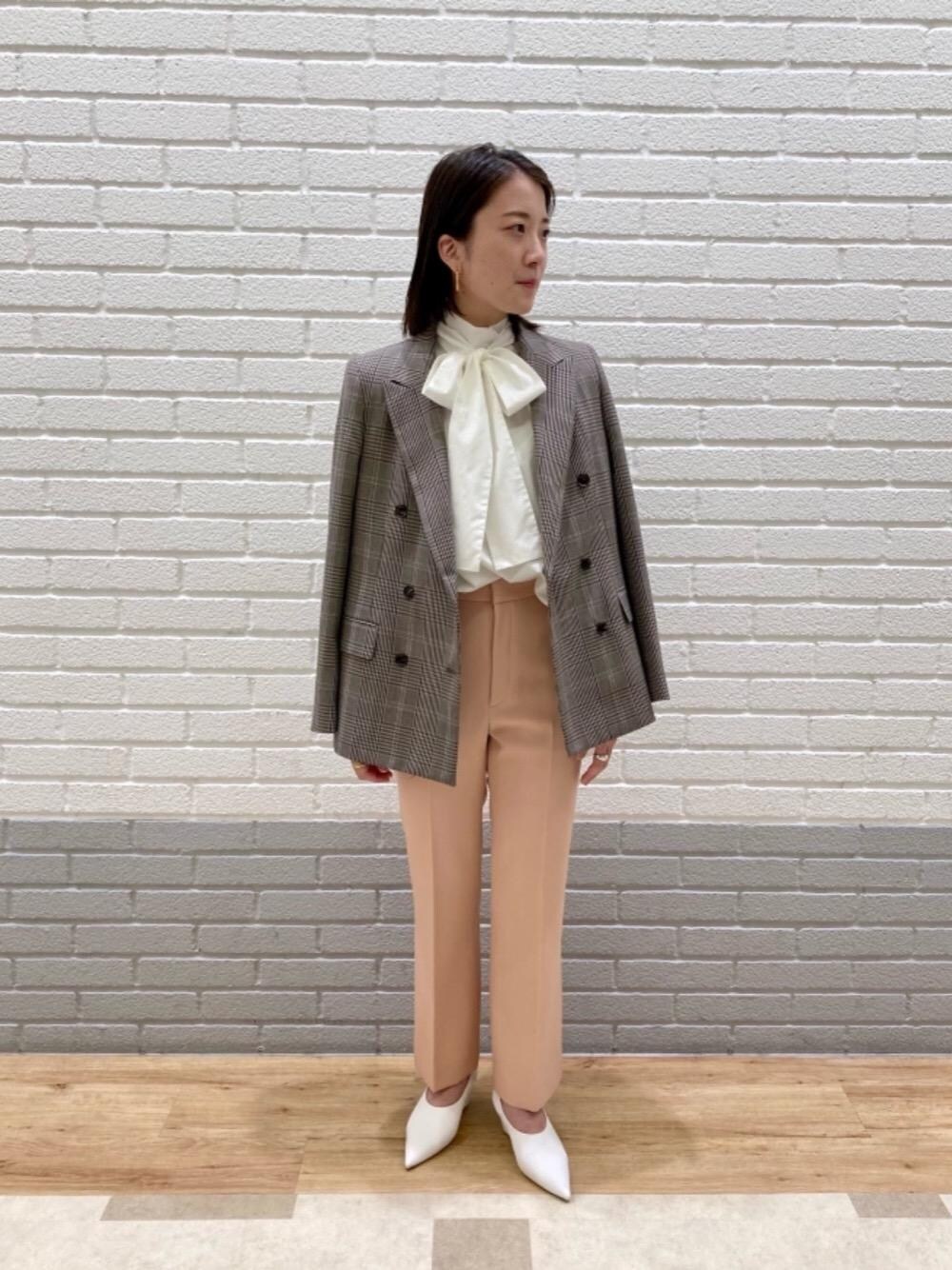 【身長】 156cm 【普段サイズ】 トップス36/ボトムス36/シューズ36h 【サイズ感】 トップス:標準的 パンツ:標準的 【コーディネートポイント】 ジャケットとブラウスのクラシカルな雰囲気に、フレアパンツでトレンド感を取り入れました。
