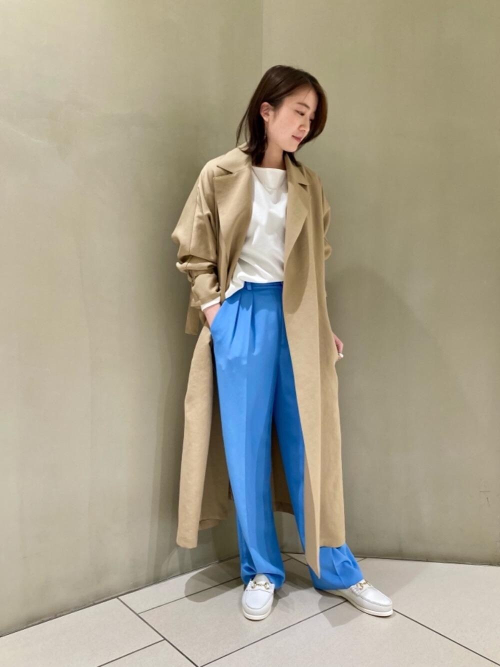 身長】 158cm 【普段サイズ】 トップス36/ボトムス36/シューズ36h 【サイズ感】 アウター:ややゆったり トップス:ゆったり ボトムス:標準的 【コーディネートポイント】 春らしく爽やかな色でまとめました。アウターは非常に軽い着心地で着やすく、お袖もゆとりのある作りなので袖にボリュームのあるトップスも合わせやすいです。パンツはタックが入っており、腰回りもゆったりとシルエットを拾わず安心してお召し頂けます。