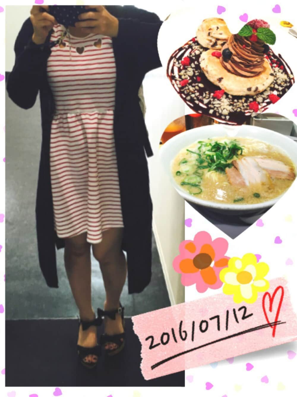 今日は大学終わってから 梅田出てふらふらしてきましたー ブラザーズカフェのスコッキー美味しかった。 コーデはマリンっぽい感じで。 ワンピースはハートの胸元穴あきがポイント 日焼けしたくないのでずっと長袖です。