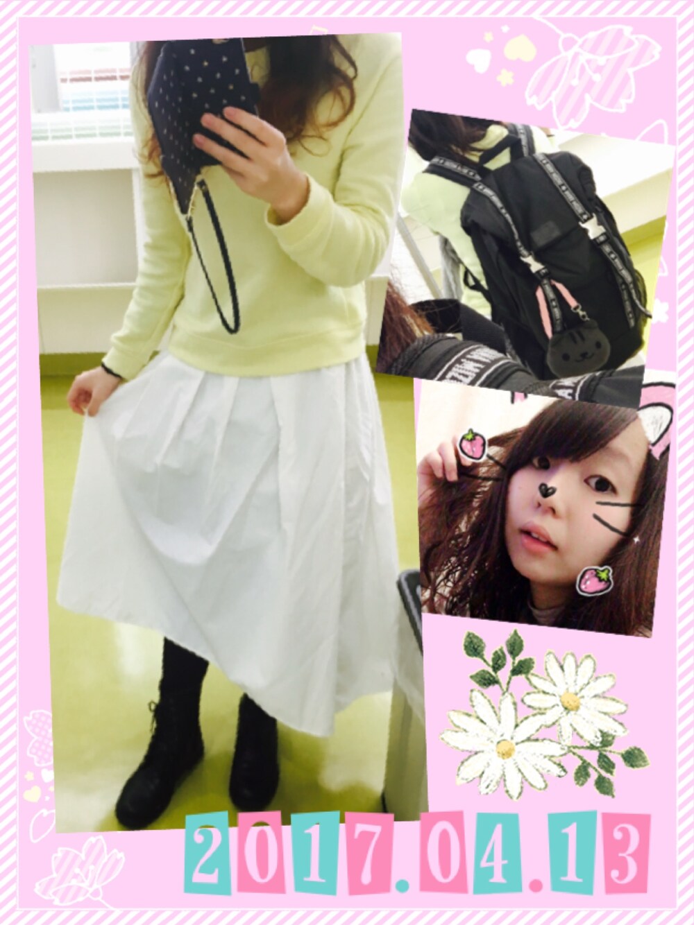 春休みが終わり、大学が始まりました 水木は荷物が多いからリュックの日。 奈々様のツアーグッズ、容量でかいししっかりしてて めっちゃ助かります。 ちょっと寒いけどテンション上げたいので カラーだけでも春っぽく。 GUのスカートは頂き物だったりして。お気に入り