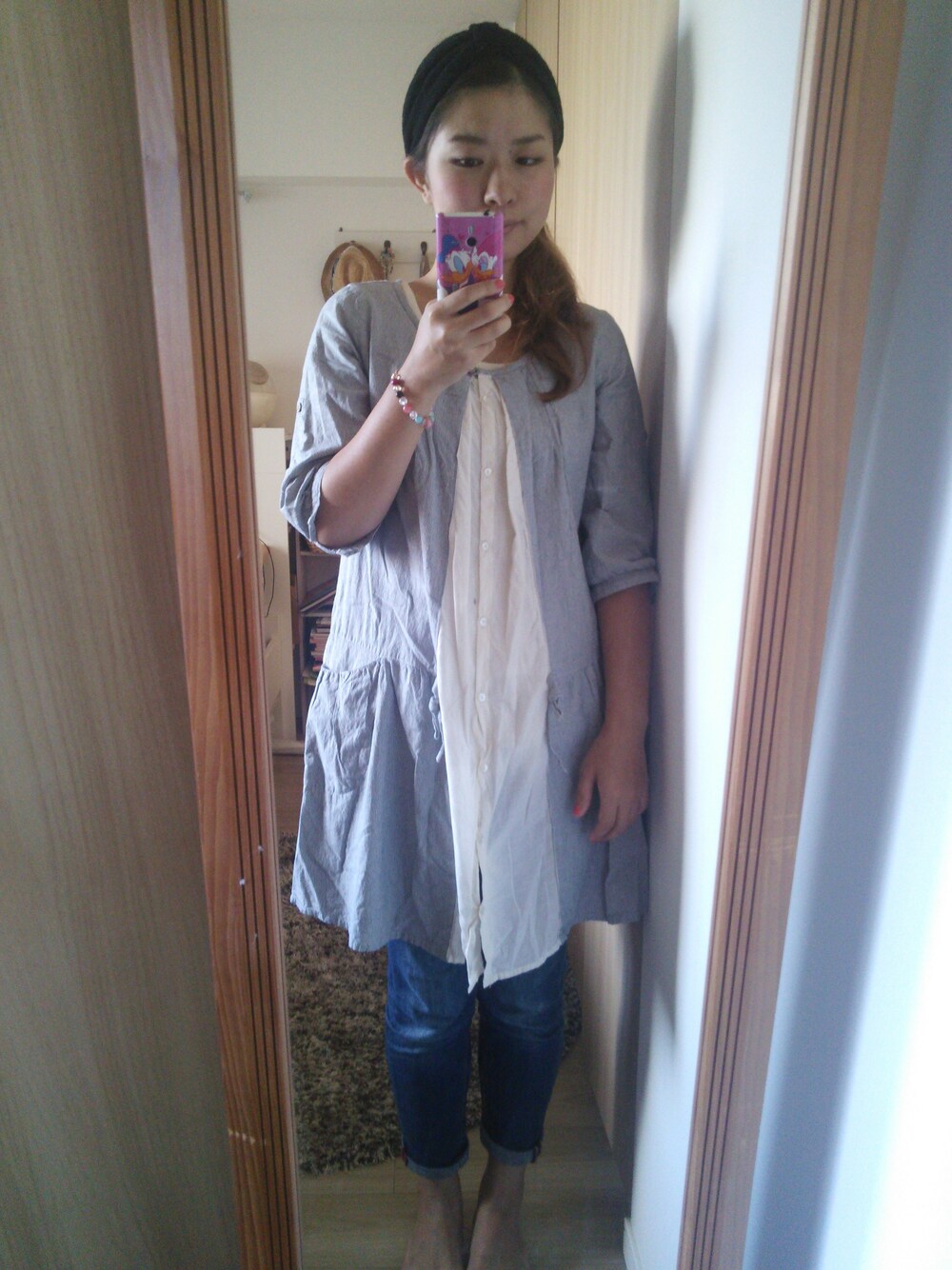 20141008 ナチュラル楽チンコーデ。 前髪伸びてきたからヘアバンドであげた!