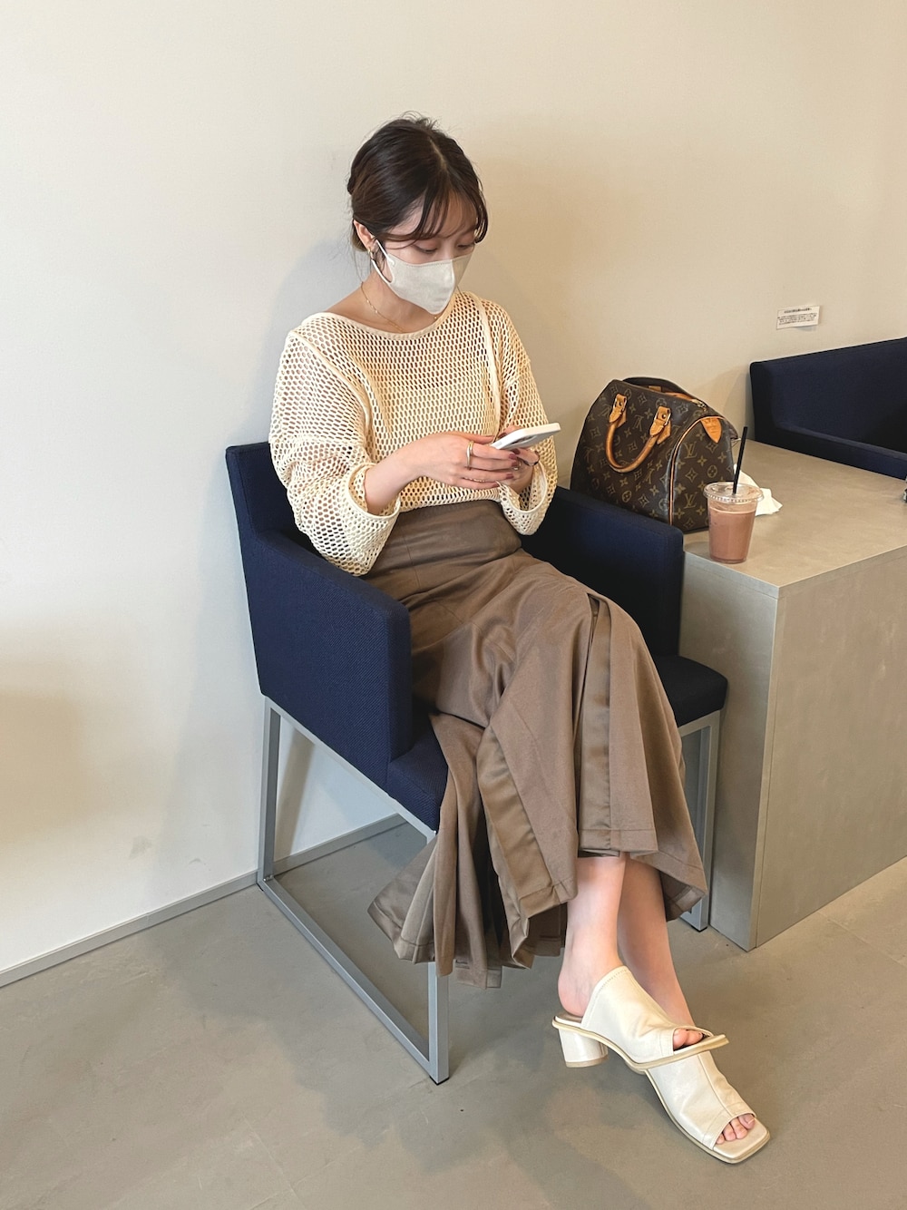 カフェに行った時のコーデ☕️ ヌナのマーメイドスカートお気に入り♡